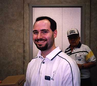 This is me after winning a transmitter hunt at the Clear Lake Amateur Radio Club Swapfest 1999.